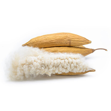 木棉纤维是天然纤维中最轻的纤维之一,其超高中空结构带来无与伦比的蓬松。以此为纱线的面料,触感轻柔如云,贴合身体曲线,有效减少睡眠时的压迫感。